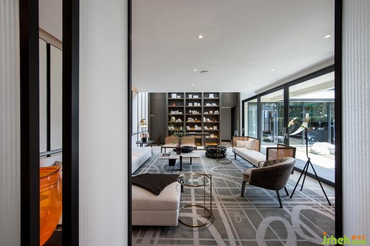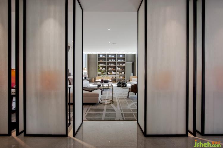 Entering the kitchen area by getting through the screen, the dark wood color kitchen is more like a art gallery that reaching the distinctive art orientation in a low-key silence. Both the artworks on the display case or thegiant landscape painting made by artistic glass increase the thickness of the space. The chandelier rose slowly from the bottom up, improving the visual experience in vertical direction. The wall is in leaf-like dancing artistic device, laying out the flying charm,