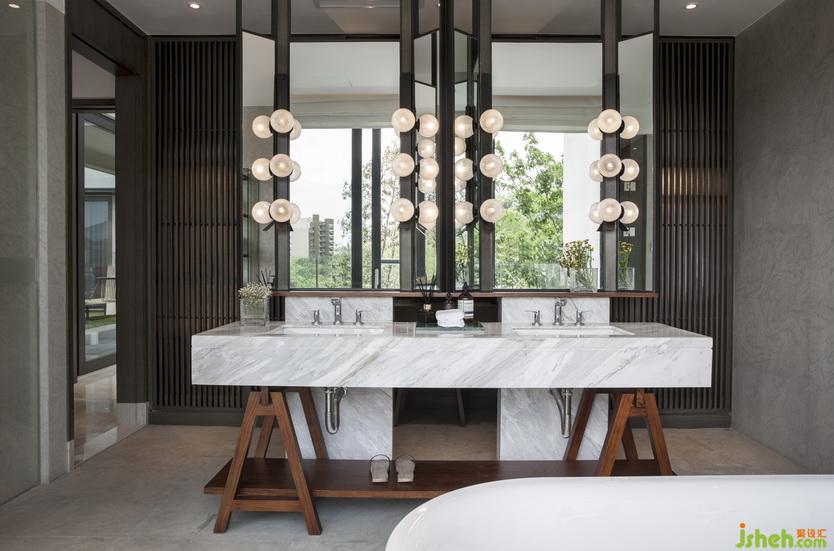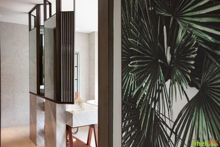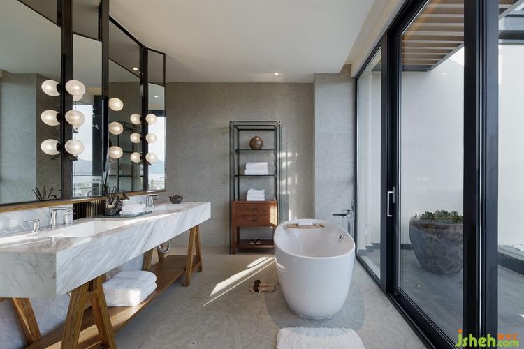 浴室以最少器物的干涉,實(shí)現(xiàn)自然之美的最大承載。迷離的光影,折面鏡將山水風(fēng)光召喚入室,創(chuàng)造靜謐閑逸的度假體驗(yàn)。