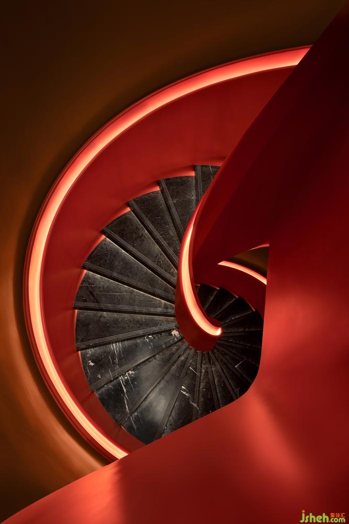 邂逅,流轉,傾心。澄陽般的旋轉樓梯螺旋往復,仿若迷宮入口,將空間置于無限神秘中。