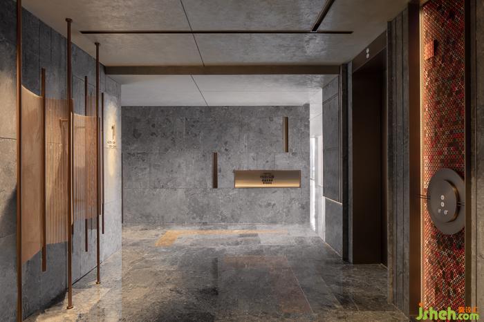 電梯廳為滋養(yǎng)了世世代代蘇州人家的陽澄湖寫就一首恒遠的贊歌。漁網(wǎng)意向的藝術品與刺繡裝點的墻面平行陣列,復刻重現(xiàn)了古蘇州漁獵與紡織的生活場景。