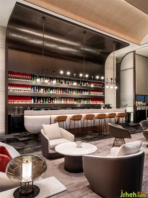設(shè)置巧妙卻不張揚(yáng)的藝術(shù)品,非空間主角,卻成為勾連時(shí)間與空間的鑰匙。酒店設(shè)計(jì)以泉水取色,以泉眼取形的水晶藝術(shù)裝置,似思緒靈感的怦然迸發(fā),粲然亦奪目;又似可穿梭古今的時(shí)光機(jī),回觀是百載商埠的繁盛浩瀚,展望是當(dāng)代都會(huì)的摩登新潮。