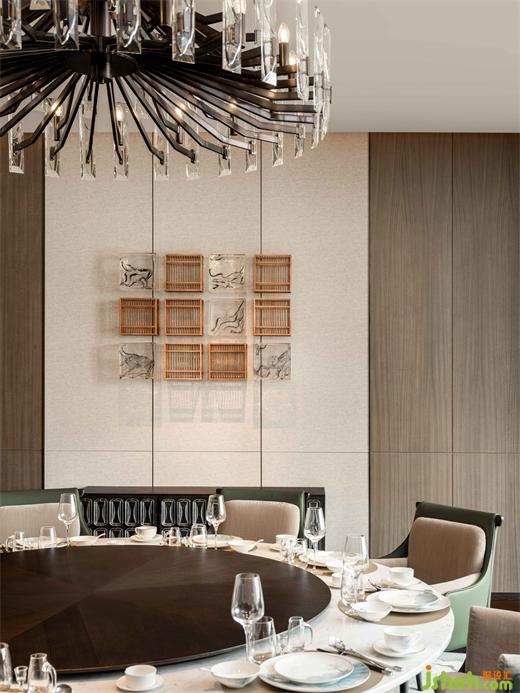 荷香縷縷,沁人心脾,醉了浮生流年。酒店設計中餐包房以細膩的材質肌理及優(yōu)雅的空間細節(jié),為私宴時光增添幾許風雅。