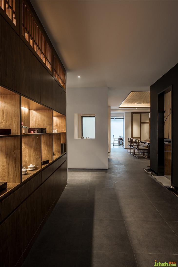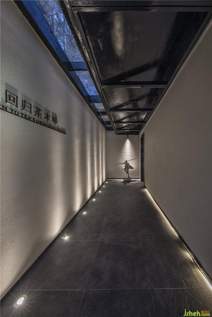 入口走道以白墻灰磚取拙樸之姿態(tài),斑駁感人的光線落下,讓其中的人獲得“靜謐中探尋”的行走體驗(yàn)?!盎貧w茶本味”理念的融入,也提醒著人們,準(zhǔn)備好迎接那一道茶香。正如作家林清玄所說(shuō),人生需要準(zhǔn)備的,不是昂貴的茶,而是喝茶的心情。