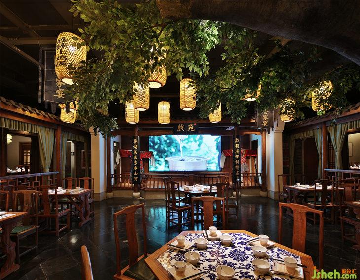 在整個空間中,通過利用空間布局的方式,將就餐區(qū)分為多個空間,并賦予每個空間獨特的文化屬性,使當?shù)匚幕谡w空間中進行融合與統(tǒng)一。同時通過造景的方式將室內(nèi)營造出室外空間的感覺,利用燈光的設(shè)計進行氛圍的體現(xiàn)。外立面則運用了大量燈籠裝飾的概念,喜慶古典的紅燈籠串聯(lián)起來給這個建筑增添更多古色古香的元素。當夜幕降臨后,半透明自發(fā)光的燈籠模樣也在眾多商業(yè)店面脫穎而出。一、二樓大廳也采用了傳統(tǒng)文化的物件之一燈籠裝飾,使得內(nèi)外的空間軟裝元素相融合,燈籠上帶著獨特的店內(nèi)主打菜品的名稱設(shè)計,通過光與影的結(jié)合,闡述餐廳靜謐而內(nèi)斂的美,也為客人留下了深刻印象的重要標志。