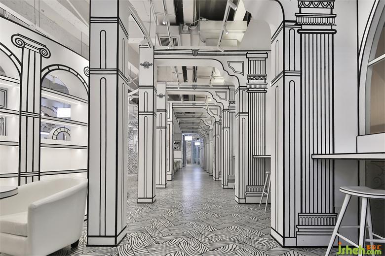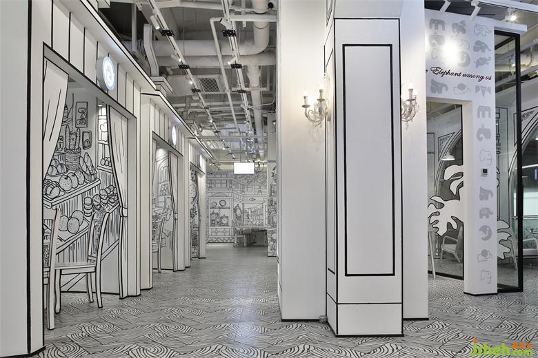 回歸到現(xiàn)實,我們知道這不是真實的,是2D漫畫營造的空間,而我們是3D的個體,空間差異增加了趣味性同時讓客戶沉浸其中。