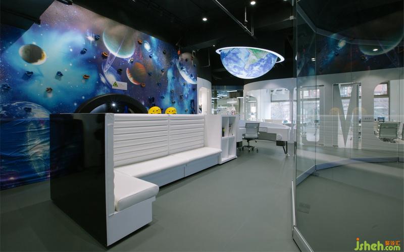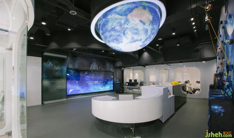 整個教學區(qū)分為火星、木星、土星、金星······,利用弧形曲線將其相連。教室之間使用活動移門連接,寓意溝通之門。以星球開頭字母的裝飾的門把手,別致不失莊重。教室整體通透的玻璃窗設計,可以讓在等候區(qū)的父母,看到教室中孩子學習狀態(tài)。