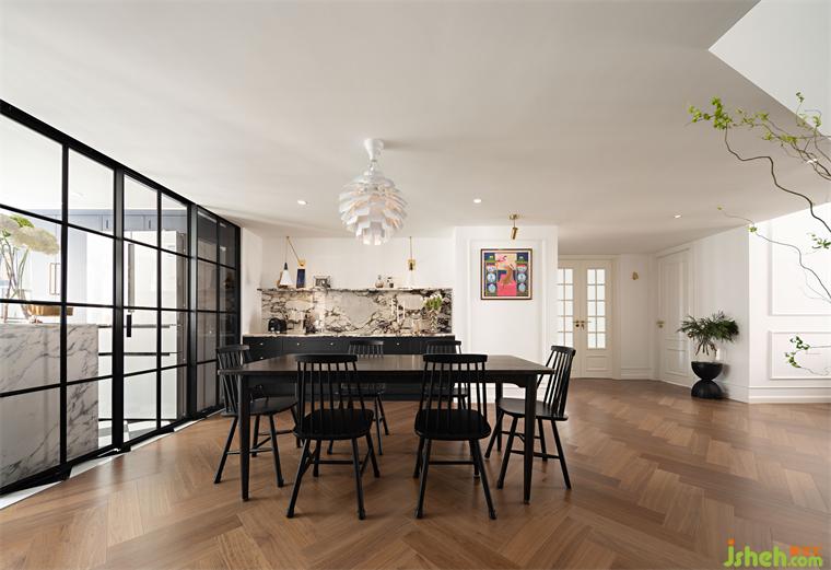 餐邊柜使用的大理石是業(yè)主挑選了許久、專門從外省運(yùn)回的寶格麗紫,廣州復(fù)式設(shè)計(jì)中間酷似愛心的天然紋理表達(dá)了主人的浪漫。他們喜歡把心意隱藏在這房子的某個(gè)地方,又與整個(gè)設(shè)計(jì)配合的絲絲入扣,讓人贊嘆。