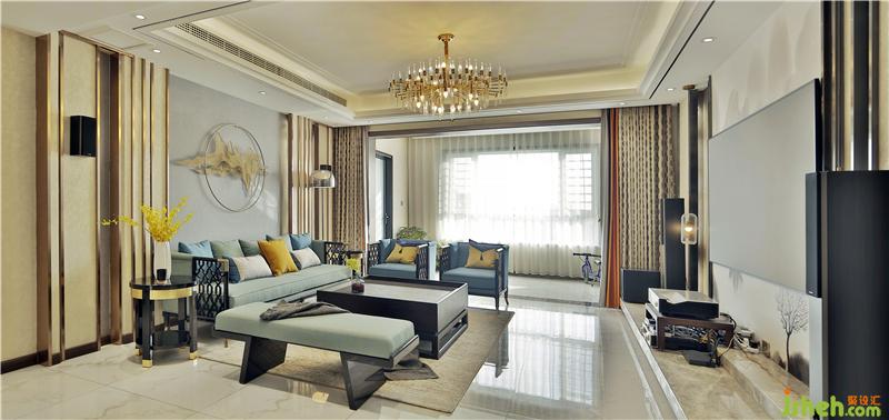 客廳是交友娛樂(lè)中心,影視墻采用墻面暗藏?zé)魩?,中間墻采用高級(jí)山水壁紙飾面,既大方又有氣派,客廳的沙發(fā)背景墻采用金屬線條圍框裝飾,自然暗香的木紋,高貴的香檳金掛飾,清雅高貴的灰藍(lán),在這里感受一茶一世界,一壺一人生東方優(yōu)雅生活的細(xì)膩。中式與現(xiàn)代輕奢結(jié)合,留給我們更多的是意猶未盡的東方韻味。室內(nèi)設(shè)計(jì)師