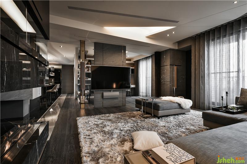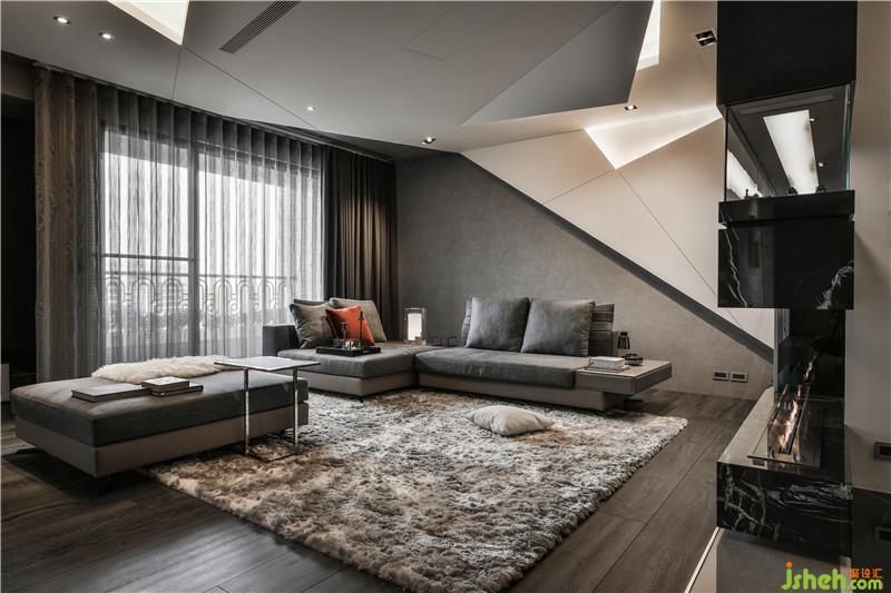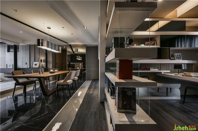傾斜且富線條變化的天花板與墻面走勢(shì),結(jié)合著各種光線的折射,而帶給屋內(nèi)極富設(shè)計(jì)感的生動(dòng)氣質(zhì),與此同時(shí)也透過在個(gè)線條中的巧妙規(guī)畫,一舉結(jié)合了收納、展示、生活實(shí)用與空間美學(xué)的多重目的。除了各種材質(zhì)特性間的豐富對(duì)話,細(xì)致的鑲嵌工法以及精準(zhǔn)計(jì)算的接合線條,亦為屋內(nèi)中刻畫出各種隱匿而優(yōu)雅的美學(xué)肌理,并以此兼顧實(shí)用與美學(xué)的多重,提出我們對(duì)居家空間的嶄新見解。