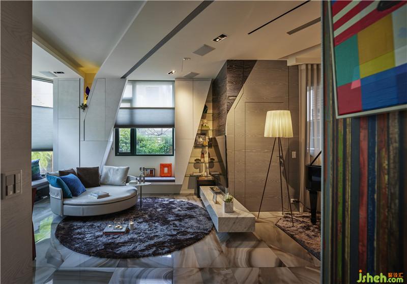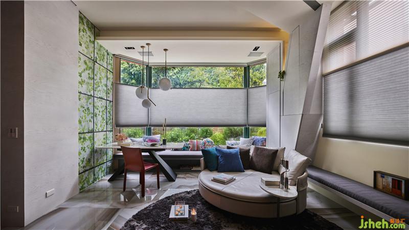 在小坪數(shù)的空間置入鋼琴,將它視為公共空間的主體,作為串連客餐廳與廚房的角色,進而達到場域的開放流動性;針對客廳部分,打破舊有常規(guī),以彈性的座椅模式呈現(xiàn),與窗外造景互相對話,引景入內,讓綠意在室內游走;將餐桌移至窗邊,形塑一種在田園用餐的愜意氛圍,也圍塑出客餐廳的共享感,藉此加大活動范圍的錯覺。天花板的延續(xù)及燈光配置看似只是造型的一環(huán),但整個空間其實有著強大的收納功能,將興趣與生活做完美連結。