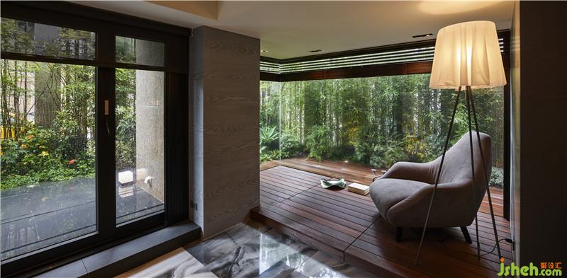 移步異景,隨著陽(yáng)光灑落的光影,來(lái)到由無(wú)框式大面玻璃呈現(xiàn)的竹林端景,透過三個(gè)空間層層交疊,層次間襯托出竹林的種種風(fēng)情,從遠(yuǎn)觀到身臨其境都有不同的感受,在此空間閱讀,更彷彿置身于竹林一般悠然、愜意。