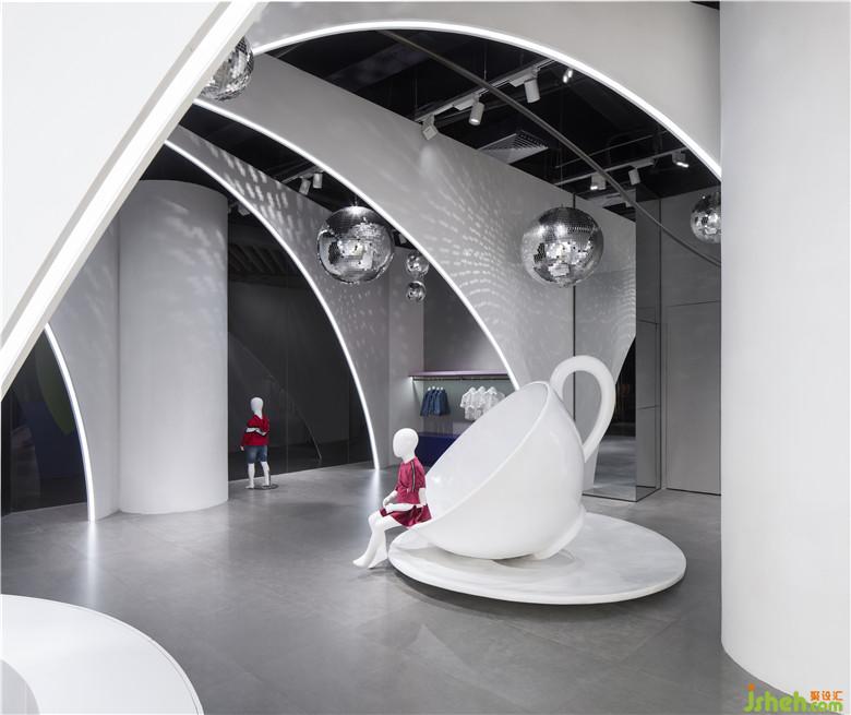 室內(nèi)設(shè)計(jì)師鏡面的巧妙運(yùn)用,給空間增加了更多趣味。幾個(gè)巨大的燈球,折射出夢(mèng)中密林的斑駁光影,無(wú)限神秘又充滿童心。穿衣鏡與空間融為一體,在滿足實(shí)用功能的同時(shí),也為想象力造景,把這里變成了一個(gè)制造夢(mèng)想、販賣快樂(lè)的地方。