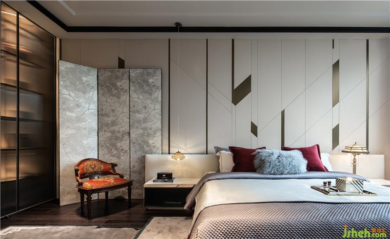 窗外的蒼翠之景,人間四季與人生四季形成巧妙互文,為空間賦予了一副摩登精致之美。光滑的硬皮靠背,杭州樣板房設(shè)計(jì)啞光質(zhì)地的溫潤質(zhì)感素雅而有風(fēng)情,金屬元素的簡約低調(diào),亦讓空間的層次感更為凸顯。地毯提取建筑外立面中的語言,將其鏤刻出來,Arts Déco元素融合空間布局,豐富空間層次,看見過去,也擁抱現(xiàn)在與未來。將民國紳士的雅痞風(fēng)度、當(dāng)代成功人士的生活品味一一呈現(xiàn)。