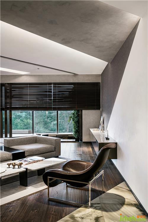 紗紋移門隱隱綽綽的設(shè)計,若隱若現(xiàn)為臥室分立出一塊獨立的書房空間,色調(diào)高級的黑色大理石與仿木紋飾面、淺灰色布藝組合,深圳豪宅設(shè)計氤氳一處極具藝術(shù)氣息的場域.