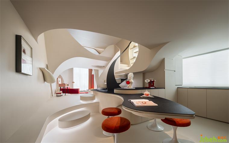 嵌入式手法打造的穴居空間,亦巧妙完成了餐客廳之間的功能銜接。樣板房設(shè)計(jì)將所有的野奢趣意與柔情詩(shī)意,一同化境。在短暫的小憩中,渾然忘卻時(shí)間,也忘卻自己。似原始森林中的穴居者、乘著宇宙飛船遨游太空的旅行家,又似靜謐安魂曲中的一章。