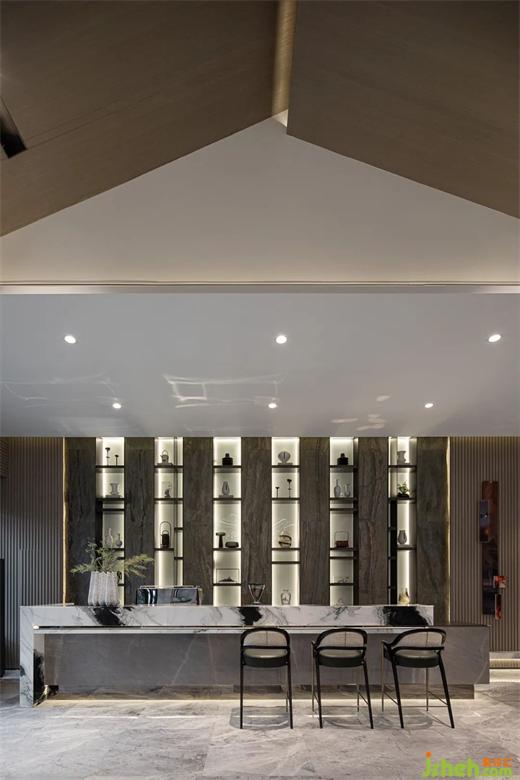 樓梯間與過(guò)廳在空間上起承轉(zhuǎn)合的作用,而立柱也是川劇高腔結(jié)構(gòu)中開端與高潮的銜接部分,售樓處設(shè)計(jì)打造生活館空間上的起承轉(zhuǎn)合。