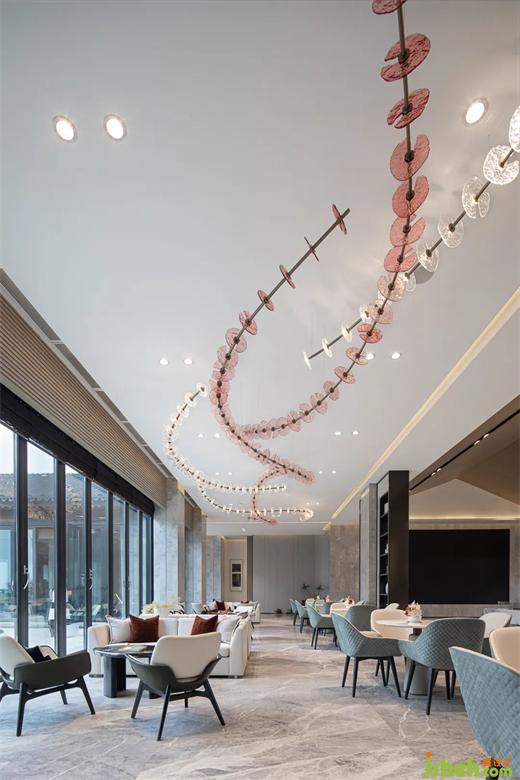 旋轉(zhuǎn)樓梯中央吊燈形式以發(fā)簪為設(shè)計(jì)發(fā)散,藝術(shù)化處理將花元素通過(guò)紙雕花藝來(lái)表達(dá),售樓處設(shè)計(jì)以旦角精致華美的發(fā)簪為設(shè)計(jì)發(fā)散,將發(fā)簪主體通過(guò)金屬來(lái)構(gòu)造,在尾部用水晶作為點(diǎn)綴。