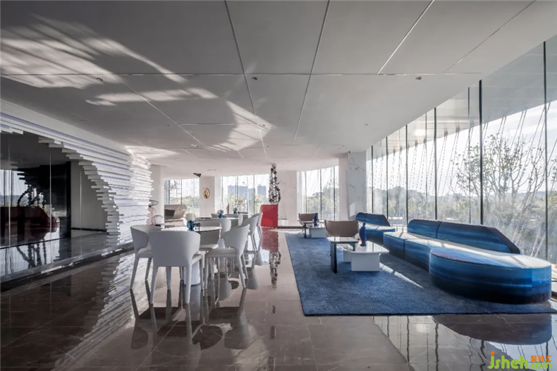 整個(gè)項(xiàng)目體現(xiàn)的創(chuàng)意思維,從藝術(shù)開始,又經(jīng)由技術(shù)的支撐,室內(nèi)設(shè)計(jì)師設(shè)計(jì)師希望在此做一次發(fā)現(xiàn)和改變,指引我們看到更多的東西。360度全玻璃幕墻引導(dǎo)內(nèi)外的景致相互映照,光線自由地勾畫出物品的輪廓,令其具有超現(xiàn)實(shí)的意境。