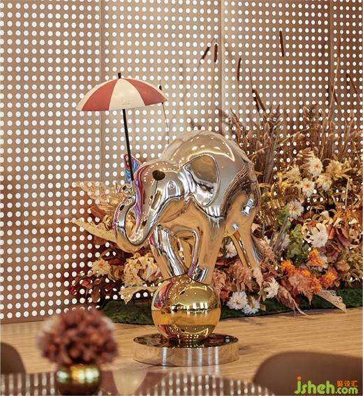 同時(shí),金茂碧桂園正榮府營(yíng)銷中心裝修設(shè)計(jì)師在舞臺(tái)旁放置了一個(gè)可以傾聽人們心情的迎賓小象,使社交的流動(dòng)性始終保持在空間里,從不同的角度看到不同的人與物,能夠在當(dāng)下有限的場(chǎng)景里,激發(fā)人們對(duì)于生活無(wú)限的熱愛(ài)與好奇,愿你我的生活充滿奇跡。