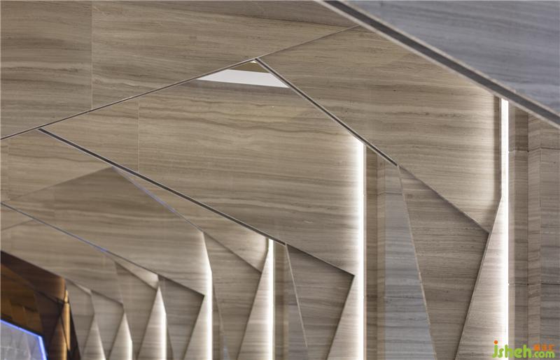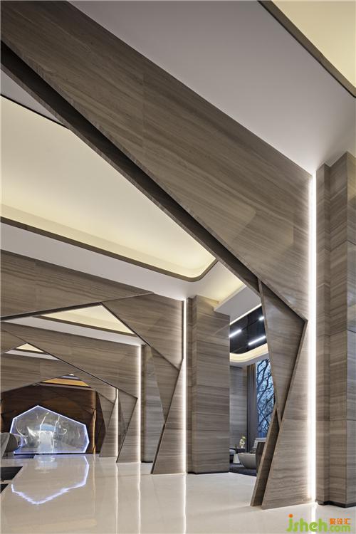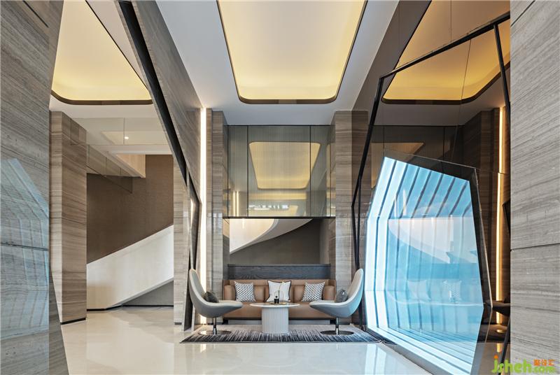 設(shè)計(jì)師大量運(yùn)用石材,不銹鋼金屬收邊,以簡(jiǎn)勝繁,簡(jiǎn)潔之中,凸顯其奢華品質(zhì)。空間的獨(dú)特之處在于幾何形狀的拼接,融合。室內(nèi)設(shè)計(jì)師