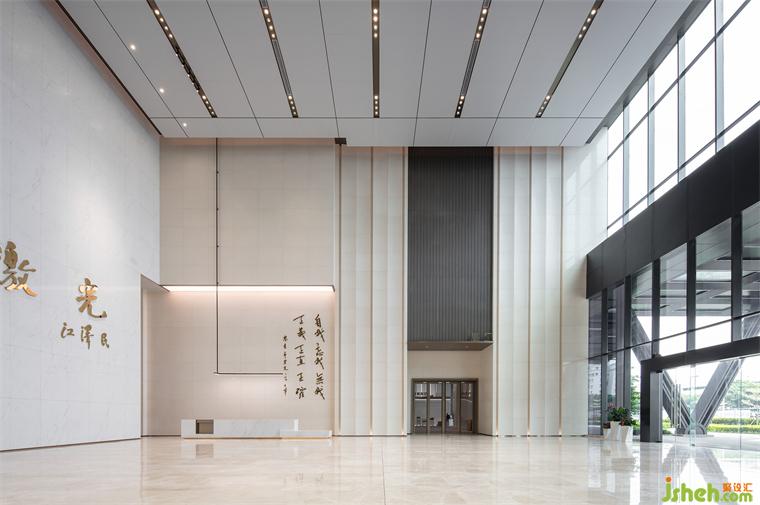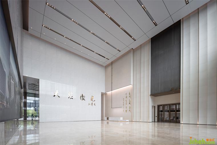 首層會堂門廳選擇了簡潔的手法和明亮的色調(diào),同時采用了自然紋理的石材,貫穿全局的線條以一種充滿建筑體量感的形式出現(xiàn),線條的細節(jié)形成了原始的設計構思,基地總部設計另外融入了以企業(yè)文化為精神的書法富含禪意的東方元素,使有形的建筑空間傳遞無形的企業(yè)價值觀,塑造企業(yè)文化與工作場所之間的共振磁場。