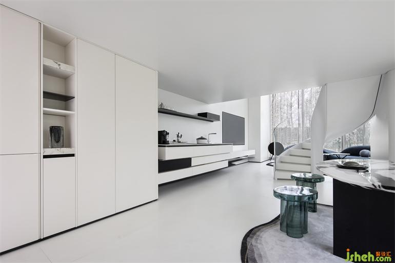 在該loft公寓裝修設(shè)計中,設(shè)計師思考的重點是:如何在繁華的都市中,尋找生活的留白,突破區(qū)域內(nèi)暮靄般沉郁的生活和工作節(jié)奏,為城市呈現(xiàn)一份清新美好。
