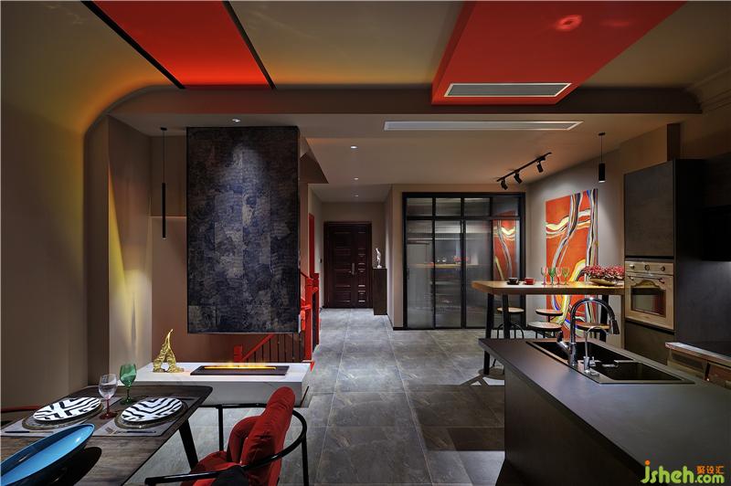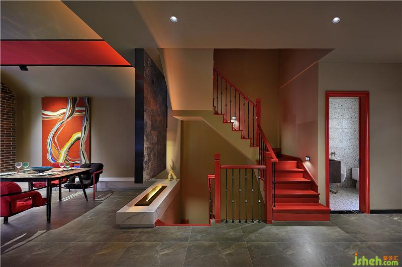 2、設計風格:業(yè)主經(jīng)常出入于各個國家,討論風格時,因為本身都是在美學的相關工作,溝通中一致認為以工業(yè)風為主的情況下,大膽的應用色彩,材料的碰撞。結(jié)構(gòu)的沖擊。產(chǎn)生對美的新認識。別墅裝飾