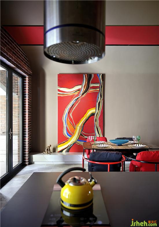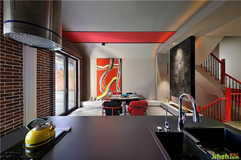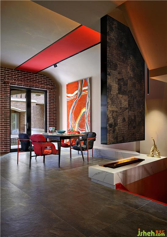 ▲紅色空間帶來(lái)的那種暖意,是整體性的亮點(diǎn)。在原有的色系中,增加了杏色,有助于空間的提升感。
