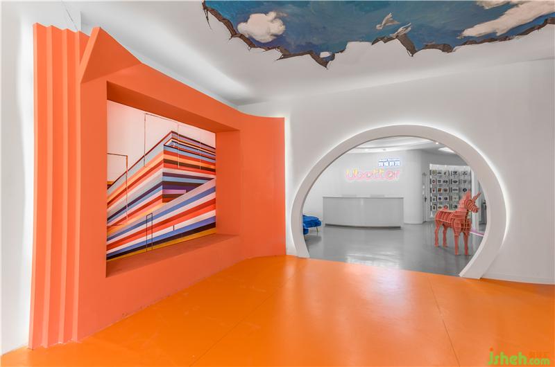 橙色是活力的象征,是高興和歡喜的顏色。圓形的大門在增加安全感的同時(shí),就像是一個(gè)時(shí)空隧道,帶領(lǐng)著孩子們?nèi)ネ鶋?mèng)想的彼岸。裝修設(shè)計(jì)理念下,采用半圓弧的空間中大塊的灰色留白,加上寶石藍(lán)色的沙發(fā)色系的沖撞增加了時(shí)尚感,嚴(yán)肅中不失活潑。