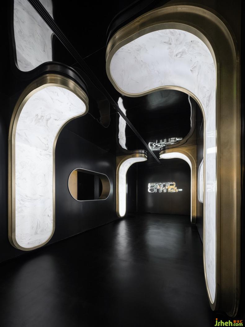 摩登復古的派對空間、引領(lǐng)潮流的互動社交、沉浸藝術(shù)的聲色現(xiàn)場,GRNDCNTRL成為全新概念旗艦夜店設計,與周圍高端時尚的戶外環(huán)境以及文化品牌形成了呼應。藝術(shù)并不檢驗已知的現(xiàn)實,而是追求理想的真理。先鋒實驗與沉浸式的設計氛圍,甫一進通道入口既已敲叩著想象的大門,似遁入超現(xiàn)實主義的光影秘境。