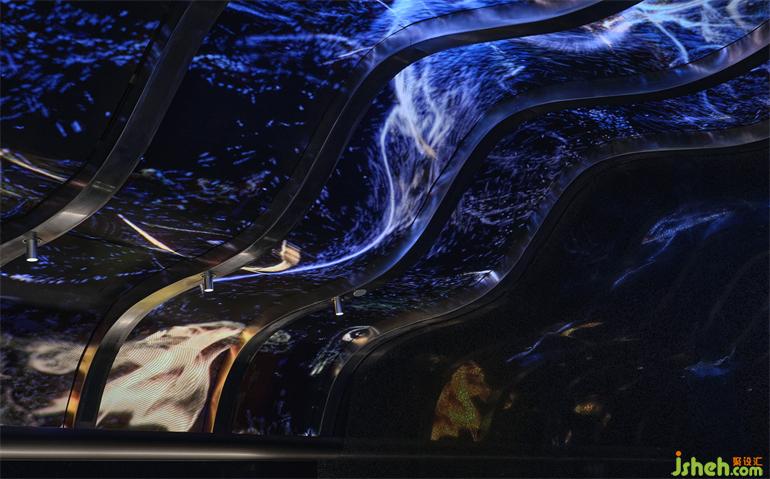 人類掌握了火,從此與動(dòng)物分別開來(lái),開啟物種進(jìn)化的起源。LED在金屬和崗石的承托下成為空間的主角,粒子依循AI智能參數(shù)的命令而跑動(dòng),形成煙火彌漫的虛擬環(huán)境。這種由細(xì)微的物質(zhì)所構(gòu)成切割錯(cuò)置的戲劇感,成都居酒屋設(shè)計(jì)又呼應(yīng)將抽象情緒心理變成可見可感具象符號(hào)的國(guó)粹藝術(shù)——川劇變臉,與之形成頗具浪漫主義意味的一次現(xiàn)實(shí)致敬。