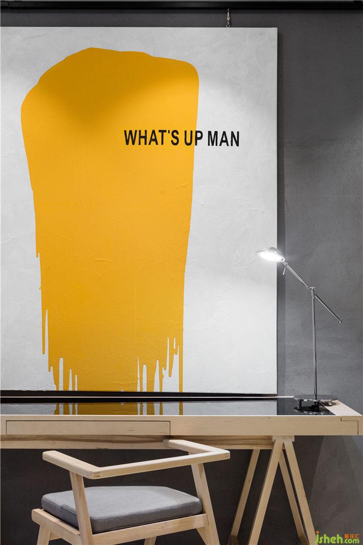 酒店坐落在杭州濱江區(qū),星光大道商圈內(nèi)。入口并不起眼,需要從商場內(nèi)部進(jìn)入,7樓。來到門前,小巧簡白的酒店門口簡單寫著“麥尖”兩字。設(shè)計師設(shè)計了一個小回廳在門口,人們需要看到酒店名字之后穿繞過回廳才能進(jìn)入大堂,回廳的端景處,沒有傳統(tǒng)的條案配藝術(shù)品等裝飾,而是一面酒店客房所有所需的用品立面展示,全部漆成白色,用玻璃封裝而成一個櫥窗,玻璃外面用橙黃色大大的寫著“hallo”,像是客房里的所有物件齊聚一堂來歡迎即將入住的客人。