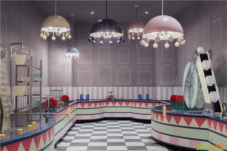 其他區(qū)域:雖然項目本身定義為親子活動中心,但是我們在空間里多處穿插了玩水區(qū)域以及party房區(qū)域。主動線與分動線的處理不僅使空間的使用效率更佳,更使體驗的延展性更佳。同時非常值得解讀的家具與燈具的造型,完全由我們?yōu)楸卷椖慷ㄖ苹O(shè)計與加工生產(chǎn),使整體美學(xué)結(jié)構(gòu)和色彩的搭配上從大到小完美得到控制。