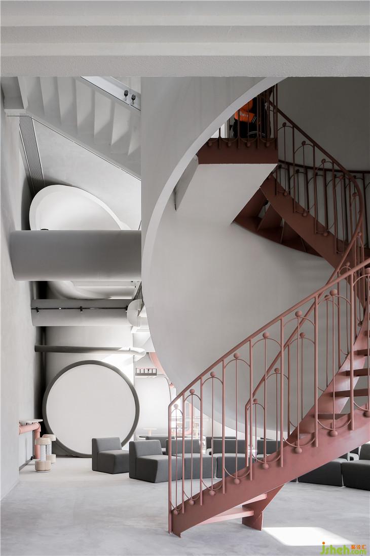 設(shè)計(jì)師希望通過(guò)這樣的概念設(shè)計(jì)來(lái)述說(shuō)信息時(shí)代下的革命情懷,材料運(yùn)用上偏向干凈冷靜的混凝土以刻畫(huà)空間業(yè)態(tài)背后的干練氣質(zhì),并希望通過(guò)空間的垂直動(dòng)線與視線設(shè)計(jì)可以為共享辦公的研發(fā)人員與消費(fèi)體驗(yàn)者提供一個(gè)可以在同一個(gè)藝術(shù)空間下共同創(chuàng)作出一個(gè)多功能復(fù)合型的辦公與商業(yè)模型。