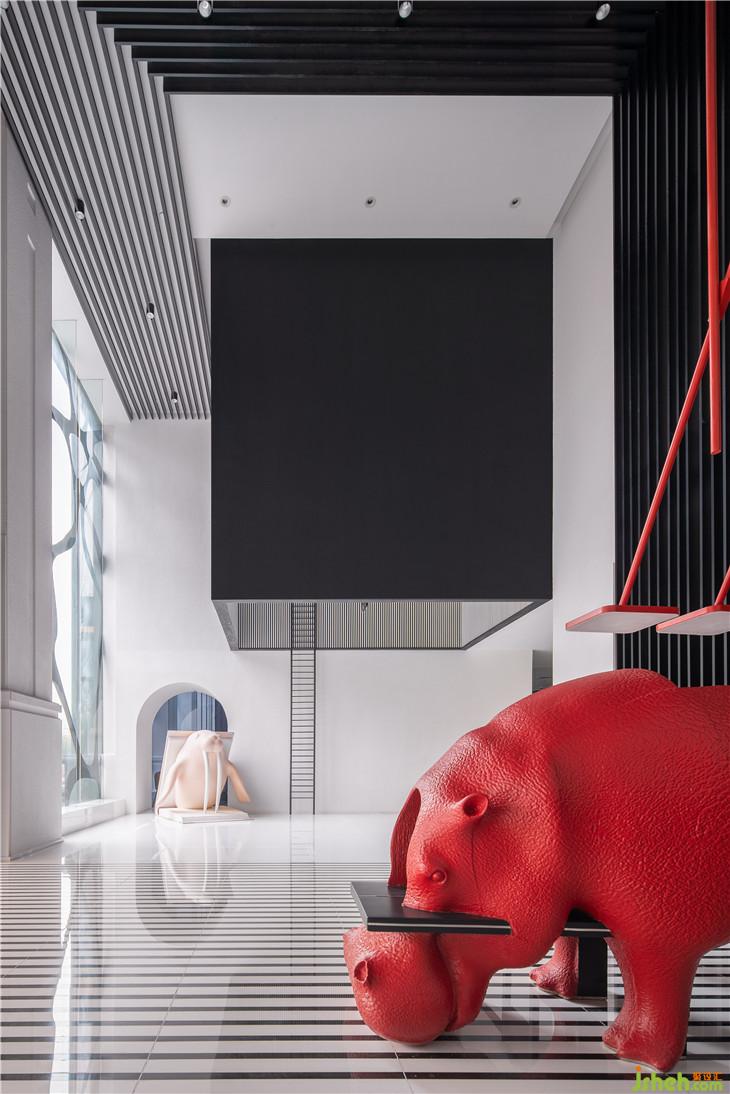 在設(shè)計上我們放棄對風(fēng)格的描述,對每組的藝術(shù)裝置我們也放棄描述。而是先通過對結(jié)構(gòu)、流線、色彩與圖形的整合以來完成空間的優(yōu)雅氣質(zhì)感,用抽象自然界的極簡圖案來完成襯托背景視覺,肅靜極簡的空間主體背景更引發(fā)消費者在這里有參觀藝術(shù)館的同理感觸。后把對動物刻畫的環(huán)節(jié)精雕細(xì)酌,并在細(xì)節(jié)上注重靜物陳設(shè)的構(gòu)圖美學(xué);主旨意在使具象與抽象糅合并體。并拿捏空間疏密比例,使得空間體現(xiàn)參與互動性,通過興趣的引導(dǎo)從而引發(fā)視覺背后的思考。在整體設(shè)計的環(huán)節(jié)中,我們也結(jié)合動物主題研發(fā)多種原創(chuàng)藝術(shù)家具、畫作及墻面墻面藝術(shù)裝置環(huán)節(jié),使觀賞與功能性并存。所有的手法最終指向一種善意的示好,使一段美好的停駐時光變成更富有價值的記憶。