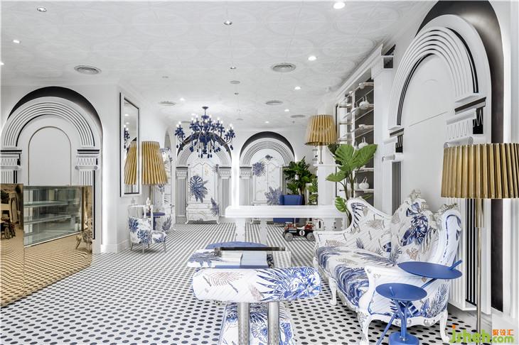 前廳的裝飾樣式延伸至了換鞋區(qū),猶如走近城堡的回廳,精美的大衣柜與展示柜用作鞋柜,既保障了隱私性,又充分照顧到消費者舉止得體的心理需求。陳設(shè)方案的創(chuàng)新性在弱化功能目的性的同時,將客戶的商業(yè)訴求捏合進(jìn)了整體性的空間美感。設(shè)計師運(yùn)用西方貴族生活場景下的空間疊進(jìn)儀式感,襯托出對空間客體展示出的優(yōu)雅禮儀服務(wù)。