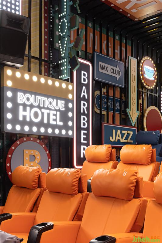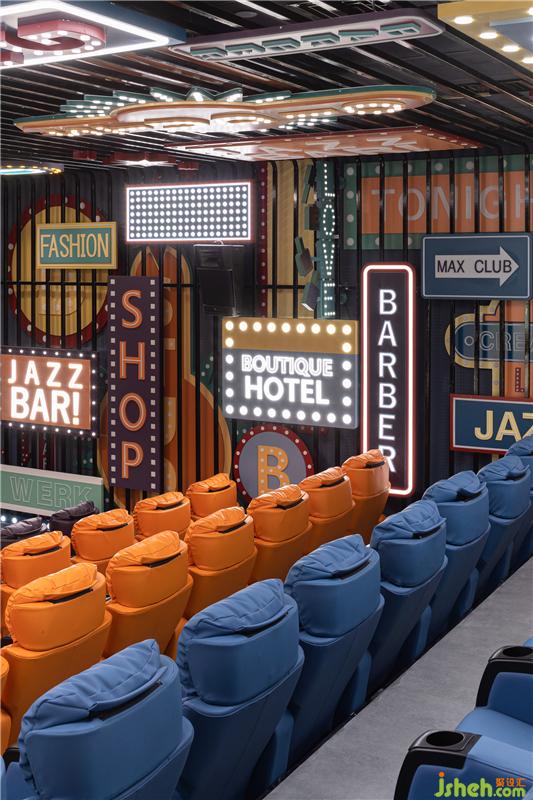 四號(hào)影廳轉(zhuǎn)場(chǎng)至極具未來感的超現(xiàn)實(shí)街頭,鮮明的霓虹盡顯城市活力,繽紛的色彩傳達(dá)張揚(yáng)時(shí)尚。電影院設(shè)計(jì)
