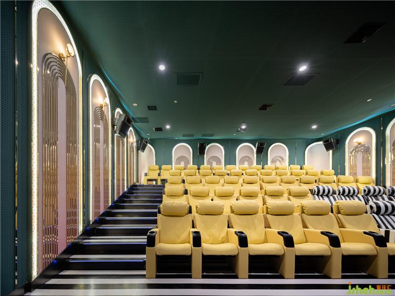 不論主題影廳或是私人包廂,設(shè)計(jì)師并未忽視聲學(xué)環(huán)境的特定要求。場(chǎng)內(nèi)壁布和墻面吊頂均使用了吸音裝置,個(gè)性化地毯有效減少噪音。舒適座椅結(jié)合視線高值差與視點(diǎn)高度,保證高質(zhì)量的聽覺與視覺享受,提升觀眾的沉浸式觀影體驗(yàn)。電影院設(shè)計(jì)