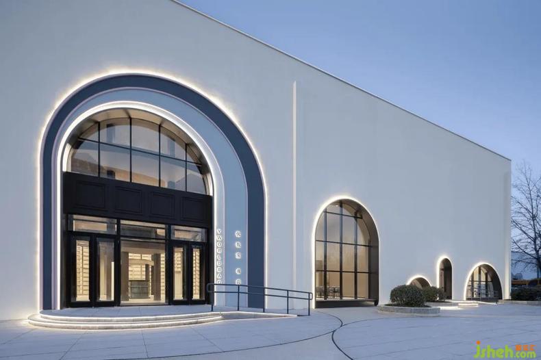于方形的建筑盒體底部洞開(kāi)一組大小各異的拱形門(mén)窗,曲線(xiàn)增添了些許柔和觀感。門(mén)窗中不同區(qū)域的風(fēng)光如畫(huà)卷展開(kāi),吸引客群的目光,延伸空間內(nèi)部的印象與意蘊(yùn)。入口恢宏的尺度賦予了人震撼的身心體驗(yàn),純白極簡(jiǎn)的建筑外殼中包裹的極致夢(mèng)幻內(nèi)核眼入眼簾。