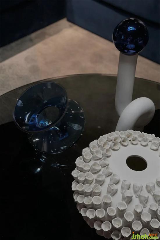 沉浸下來(lái),體驗(yàn)屬于這個(gè)空間的感受,自古紅藍(lán)出CP,這一抹純粹的藍(lán)色,像薄暮時(shí)的天空,幽邃的湖心,靜謐平和,具有強(qiáng)大的包容力,經(jīng)典藍(lán)搭配空間的中國(guó)紅,家具展廳設(shè)計(jì)給客戶帶來(lái)更多組合體驗(yàn)的搭配想象力。材質(zhì)、工藝、圖案、紋理、燈光,每一個(gè)細(xì)節(jié)都不爭(zhēng)不搶卻透露著自然的高級(jí)感,這是產(chǎn)品所堅(jiān)持的精神所在。
