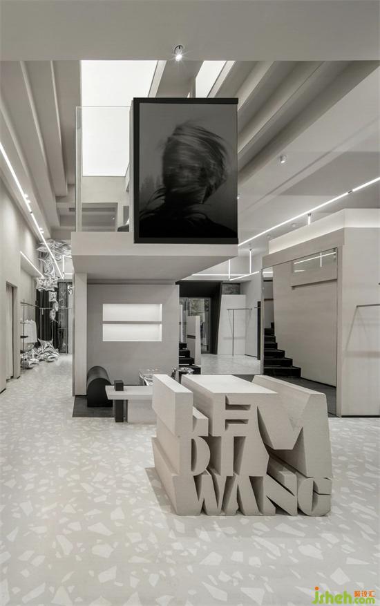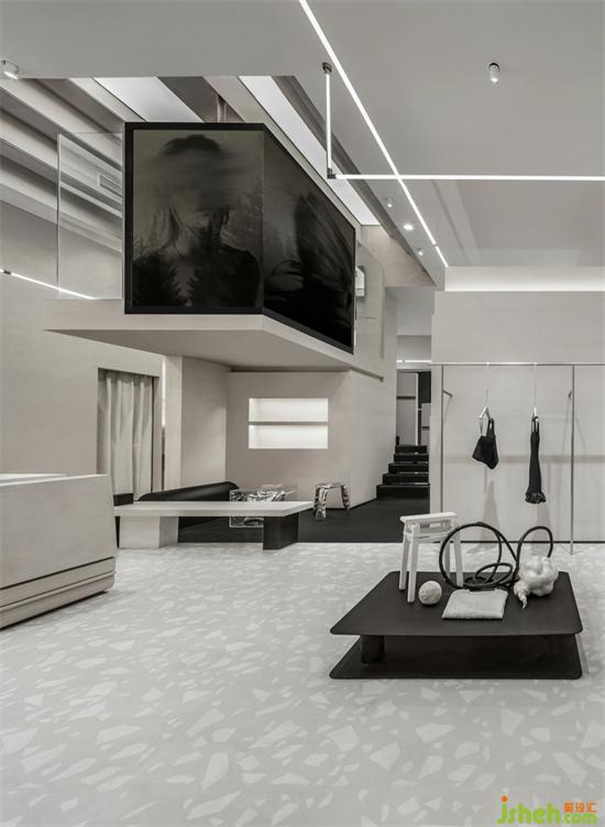 低調(diào)隱蔽的入口設計,與摩登時尚的玻璃盒子碰撞,側(cè)面的LED屏放映著表達品牌主張的宣傳視頻,旗艦店設計張揚的畫面、動感的旋律,在矩陣縱橫的空間構(gòu)成中,從精神上釋放了女性的含蓄與內(nèi)斂。