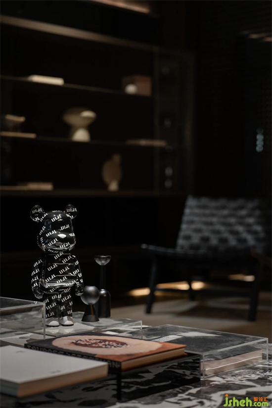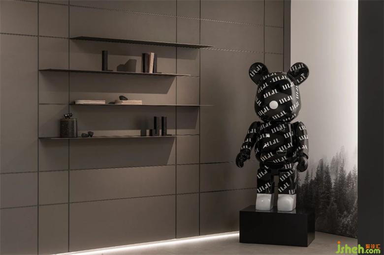進(jìn)門墻面為柜體和隔板組合形式,潤舍納圖可以展示產(chǎn)品,表達(dá)方式較為保守,厘羋小熊的加入,為空間注入了靈氣。