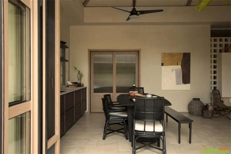 原院落雖說有可看之處,室內(nèi)卻是稍顯遜色。下疊海邊度假別墅,原本單層建筑面積僅為156平的房屋,被原精裝房各種實(shí)墻隔斷分割成了兩層,動(dòng)線及通風(fēng)極差,一層除了一個(gè)超大的臥室占據(jù)了一層大部分的空間,僅剩的空間還將廚房設(shè)置在了正大門的左側(cè),入門后若未開啟室內(nèi)空調(diào),便進(jìn)入了一個(gè)完全被阻隔的悶熱客廳,后院風(fēng)景再美也無視角欣賞。偌大臥室,被繁復(fù)的木作及上墻的木雕堵得喘不過氣。