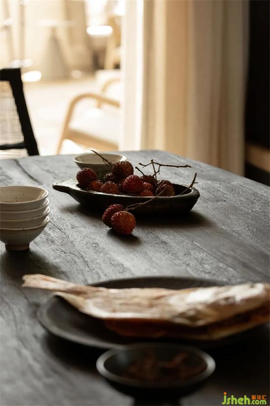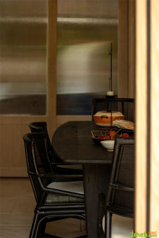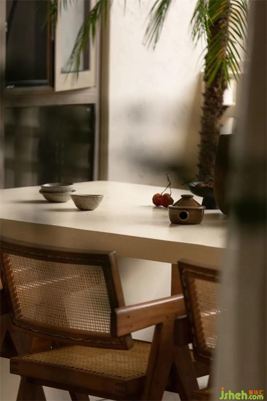正對(duì)客廳用推拉式全開玻璃門讓客廳與院落隨時(shí)聯(lián)通,順著海風(fēng)將椰林的香氣帶入室內(nèi)。房間內(nèi)保留了大面積的玻璃窗,別墅設(shè)計(jì)將外景納入室內(nèi),院墻的方格石籬笆讓陽光斑駁地照進(jìn)來,顯得格外清透。