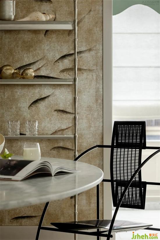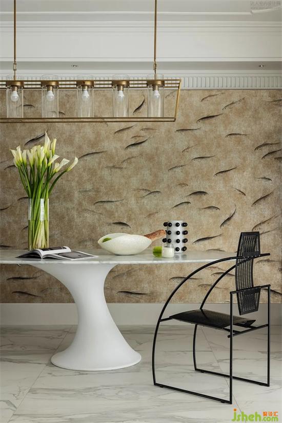 高掛的Art deco風(fēng)燈具、竹節(jié)元素的餐架、意式中古的設(shè)計(jì)師椅、浪漫風(fēng)情的花朵椅,這全都展示著「與藝術(shù)共居」的優(yōu)雅詩(shī)意。當(dāng)音樂(lè)響起,品著咖啡,心儀的書籍,家裝設(shè)計(jì)翻開上次勾留的位置,享受著生活的溫暖與優(yōu)雅。