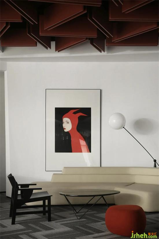 張占占的作品大都以孤獨(dú)作為主題,辦公設(shè)計(jì)以簡(jiǎn)練柔和的線條、簡(jiǎn)潔而標(biāo)志性的紅黑配色、可愛而沉默的動(dòng)物形象進(jìn)行傳達(dá)。