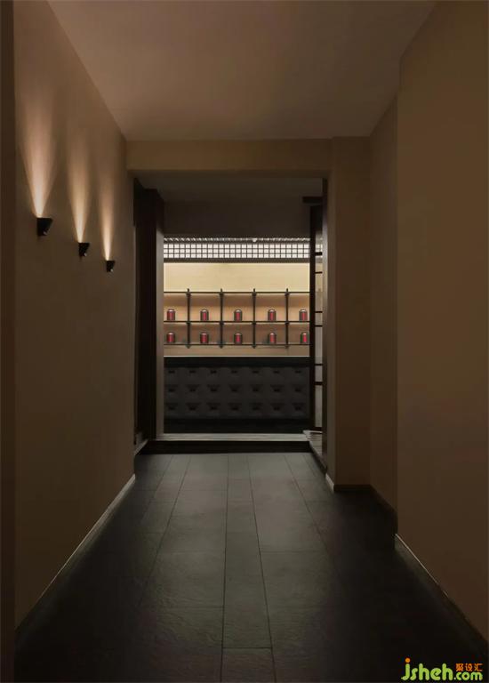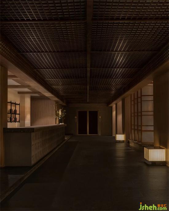 前臺(tái)及接待空間作為客人對(duì)于館內(nèi)空間形態(tài)的初次認(rèn)知,茶樓設(shè)計(jì)團(tuán)隊(duì)將“白墻”內(nèi)縱、橫梁木用新的設(shè)計(jì)手法詮釋。用木格柵、質(zhì)感涂料、木梁劃分出飲茶卡座、麻將包間、茶道空間三大區(qū)域。茶樓設(shè)計(jì)通道頂部用木格柵排陣,嵌入天光膜模仿自然光線的照入,使自然光線進(jìn)入到通道。進(jìn)入包間及卡座的通道區(qū)域,選用木質(zhì)、涂料、等具有自然質(zhì)感的材料。