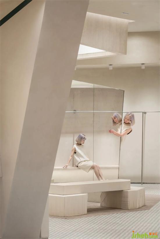 130m2的空間即使是對其做了獨(dú)特的量體裁衣,依然難以表達(dá) LEDIM WANG 其獨(dú)特與時(shí)尚的無限可能性,設(shè)計(jì)團(tuán)隊(duì)利用鏡面包裹位于中心的內(nèi)建筑體,店鋪設(shè)計(jì)模糊了人眼視覺的邊界感,鏡中映射出的虛幻世界與外界的現(xiàn)實(shí)相互融合,在有限空間內(nèi)創(chuàng)造出無限的視覺張力。