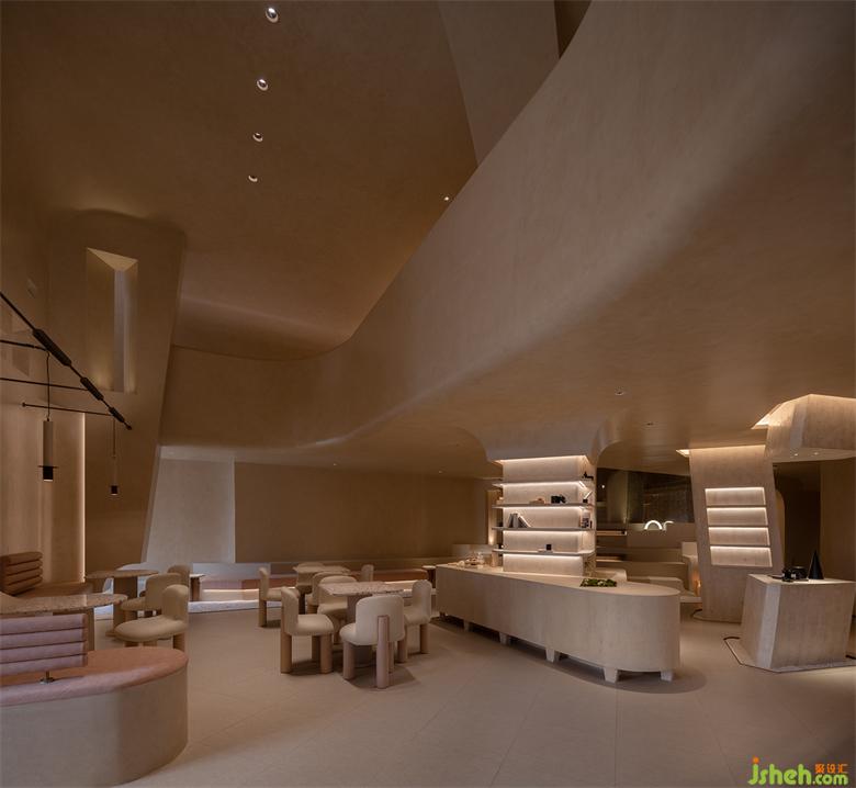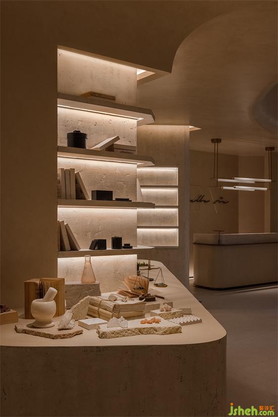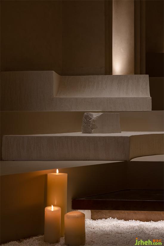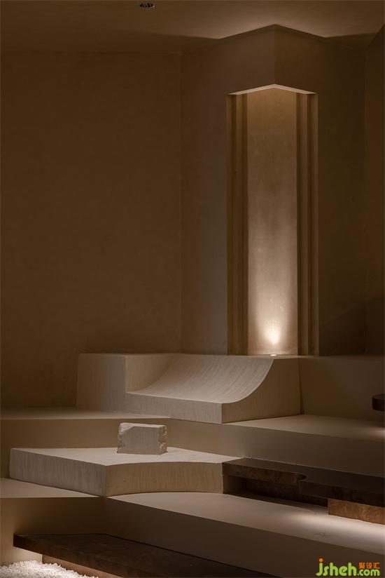 空間中的弧線,切掉了棱角,構(gòu)建出自然意味的建筑感。也收斂起精明與尖銳,似乎一旦進(jìn)入,不管對美好生活有多少不被理解的執(zhí)念,都將被溫潤又莊重的接納或是尊重。會所設(shè)計看似簡單的線面與幾何體塊的組合中,有著太多的場面,被工匠們一筆筆刷出來的“原生感石柱”,幾可亂真的效果,采用了仿洞石涂料,調(diào)和自意大利進(jìn)口的原石粉末。