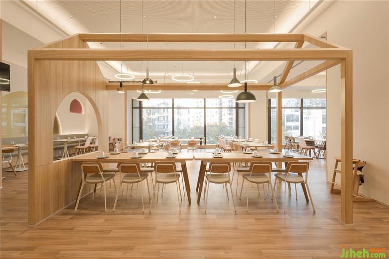古魯奇所設(shè)計(jì)的維塔蘭德親子餐廳,并不走當(dāng)下流行的夸張?jiān)O(shè)計(jì)的網(wǎng)紅路線(xiàn),清新如天堂的風(fēng)格考慮更多的是小朋友的使用,而不是為了讓父母拍照。在空間上設(shè)計(jì)師將目光投放在了孩子本身對(duì)高高低低的可以攀爬的空間比對(duì)五顏六色的地方更感興趣的天性上,將空間生動(dòng)有趣高低錯(cuò)落起來(lái),試圖營(yíng)造出能讓孩子們自?shī)首詷?lè)“野蠻生長(zhǎng)”的空間,也好讓父母?jìng)兺档酶∩肴臻e。